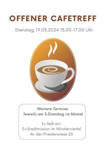 Es ist wieder soweit! Unser Café öffnet für alle, die an guter Gemeinschaft, Gesprächen und geistlichen Impulsen interessiert sind.